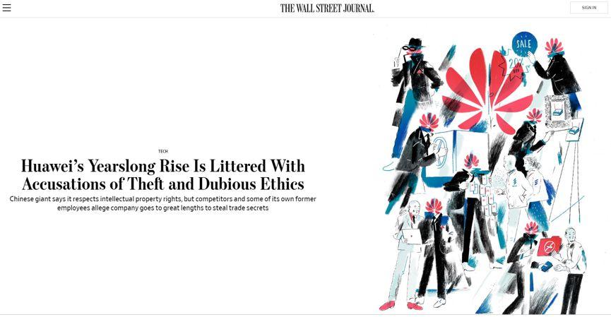 根據(jù)耿直哥了解,這事最初起源于《華爾街日?qǐng)?bào)》在今年5月25日發(fā)布的一篇宣稱(chēng)華為公司的崛起靠的都是“抄襲”和“盜竊知識(shí)產(chǎn)權(quán)”等“不道德”的行為的“深度調(diào)查”報(bào)道?! ?/p>
