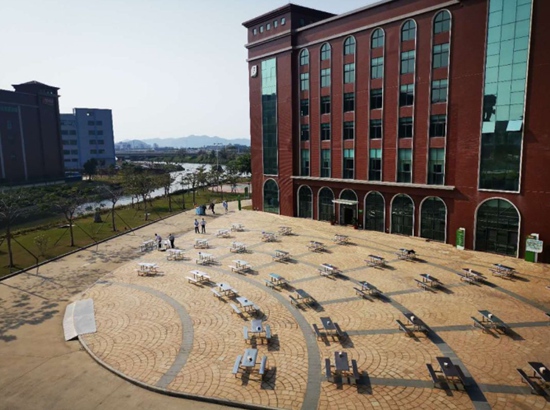 在位于珠海的透明工廠,他們把飯?zhí)迷O(shè)在戶外,每個(gè)座位相隔5米遠(yuǎn)。不僅如此,現(xiàn)場(chǎng)還配備一群監(jiān)督吃飯的“監(jiān)考員”,如此硬核的安全復(fù)工得到網(wǎng)友點(diǎn)贊。