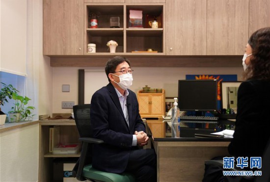高永文接受記者采訪(4月6日攝)。新華社記者 李鋼 攝