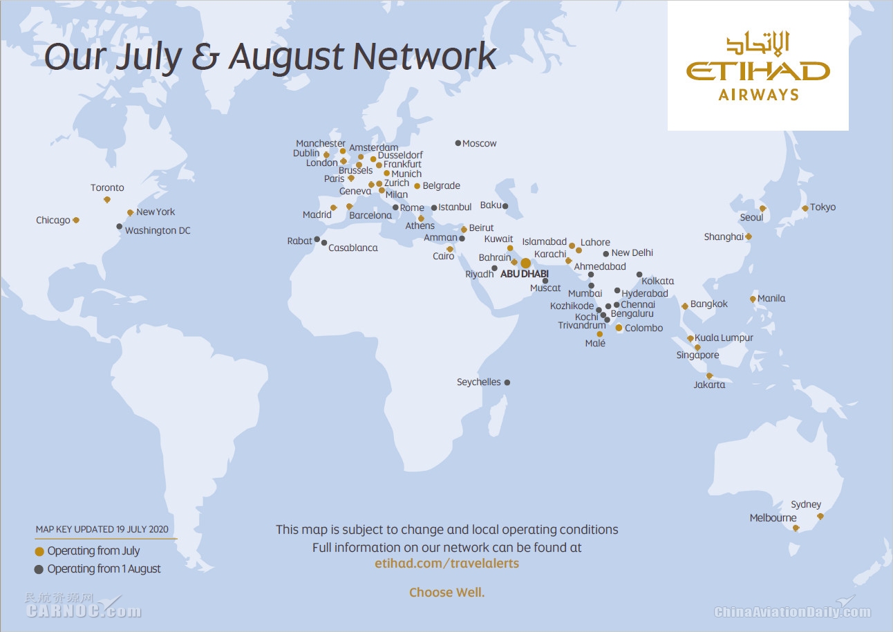 圖:阿提哈德航空7月 & 8月航線網(wǎng)絡(luò) 阿提哈德航空供圖