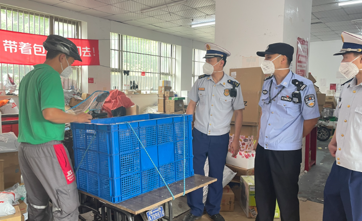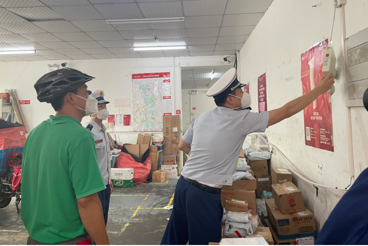 “我們結(jié)合‘618’電商節(jié)到轄區(qū)里的快遞網(wǎng)點進(jìn)行檢查,檢查發(fā)現(xiàn)有貨物占用疏散通道的情況,電瓶車也存在違規(guī)停放。一旦發(fā)生火災(zāi),旁邊還有可燃物,容易造成人員傷亡,所以我們第一時間叫他們把電瓶車全部推出來,進(jìn)行整改?!焙缈趨^(qū)消防救援支隊綜合指導(dǎo)科李志杰介紹。