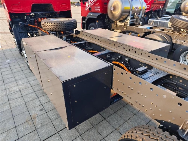 承載能力是自卸車的核心競爭力,乘龍H7純電自卸車通過結(jié)構(gòu)優(yōu)化與動力升級,實(shí)現(xiàn)“多拉快跑”的運(yùn)營需求。該車采用一次沖壓成型大梁,配合雙9.5T前橋與雙25T 輪減后橋的超強(qiáng)組合,構(gòu)建起足以應(yīng)對極端工況的承載體系。8-9米的超長貨廂設(shè)計(jì),較同類車型裝載容積提升18%,單趟運(yùn)輸量的增加直接轉(zhuǎn)化為運(yùn)營效率的提升。