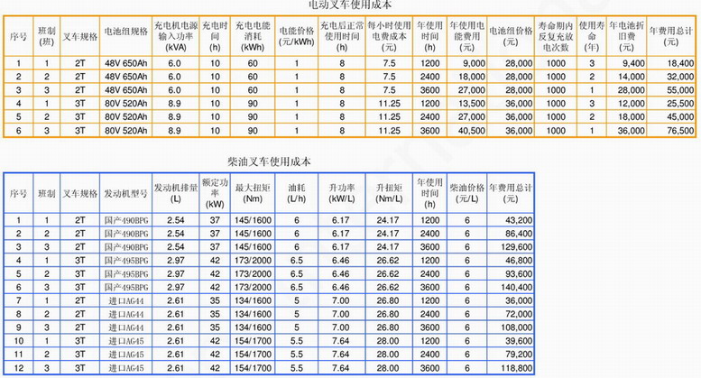 電動(dòng)叉車(chē)與柴油叉車(chē)能耗對(duì)比